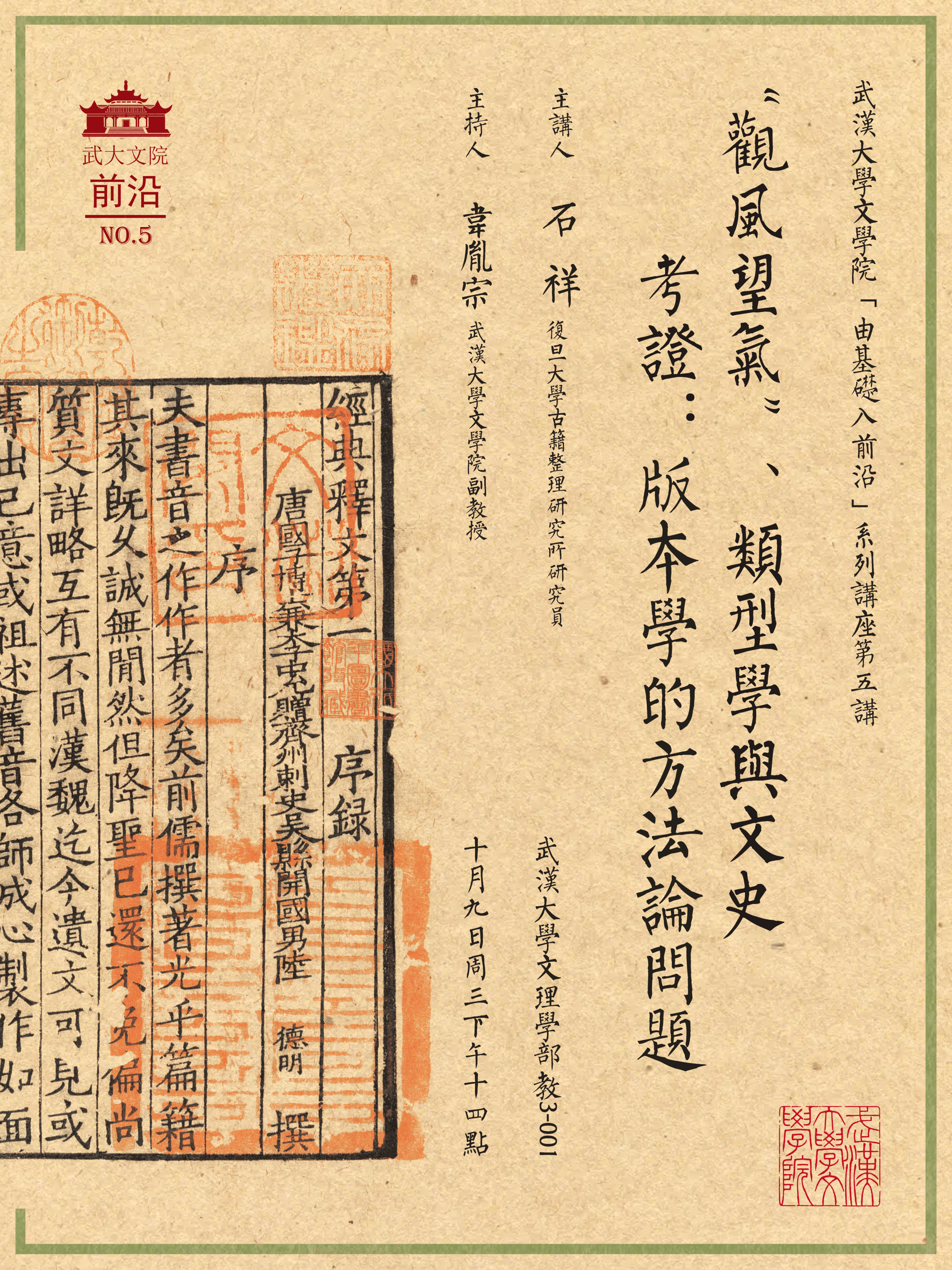 报告题目:“观风望气”、类型学与文史考证:版本学的方法论问题