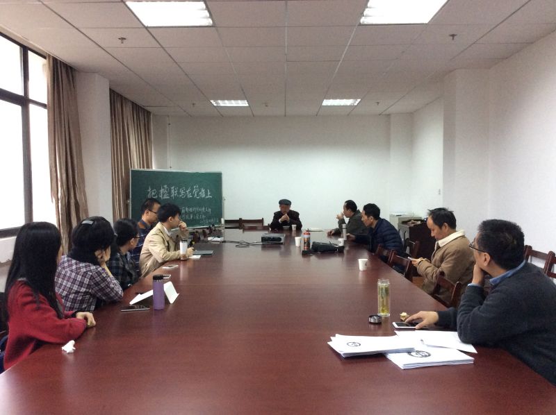 上午,党支部邀请了湖北省楹联协会会长郭省非作题为“把党旗写在楹联上”的主题演讲报告,旨在引导党员同志如何发挥专业所长,传承发扬中华民族传统文化,并利用传统文化资源为党的宣传工作服务。报告共分三部分,郭会长首先阐明了对联性质,指出对联是大众文学,文艺工作者应用楹联为人民服务。随后介绍了联律通则,即实际的楹联创作经验及规则。最后,着眼于“用楹联为大局服务”这一点,总结出我们既可以将楹联用为一种党的理论宣传方式,也可以将它应用于为各行各业服务上。