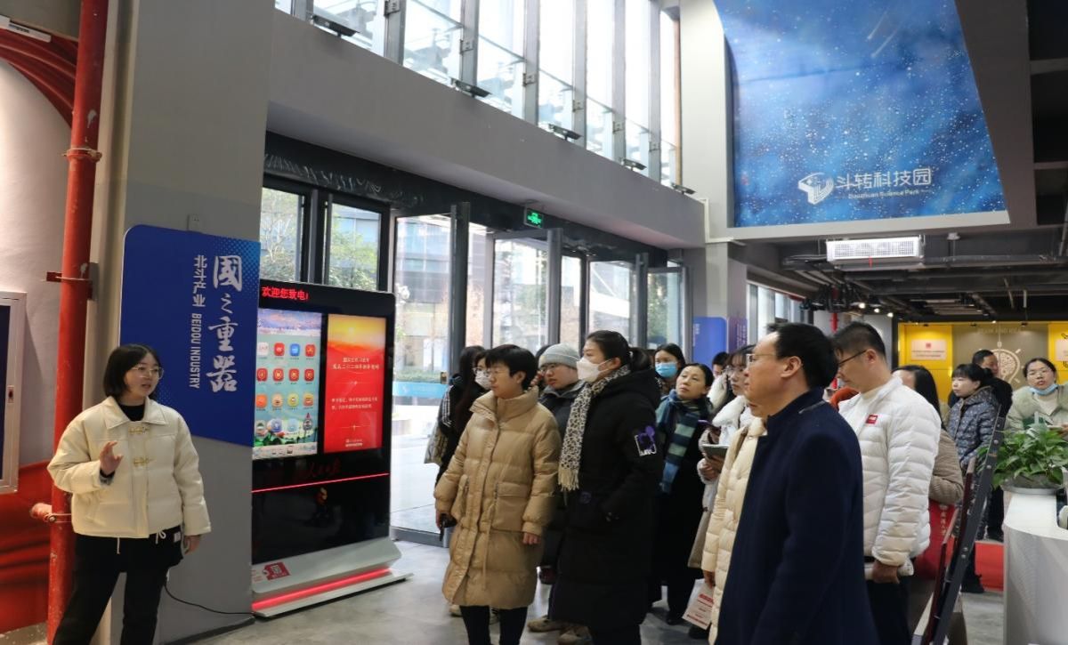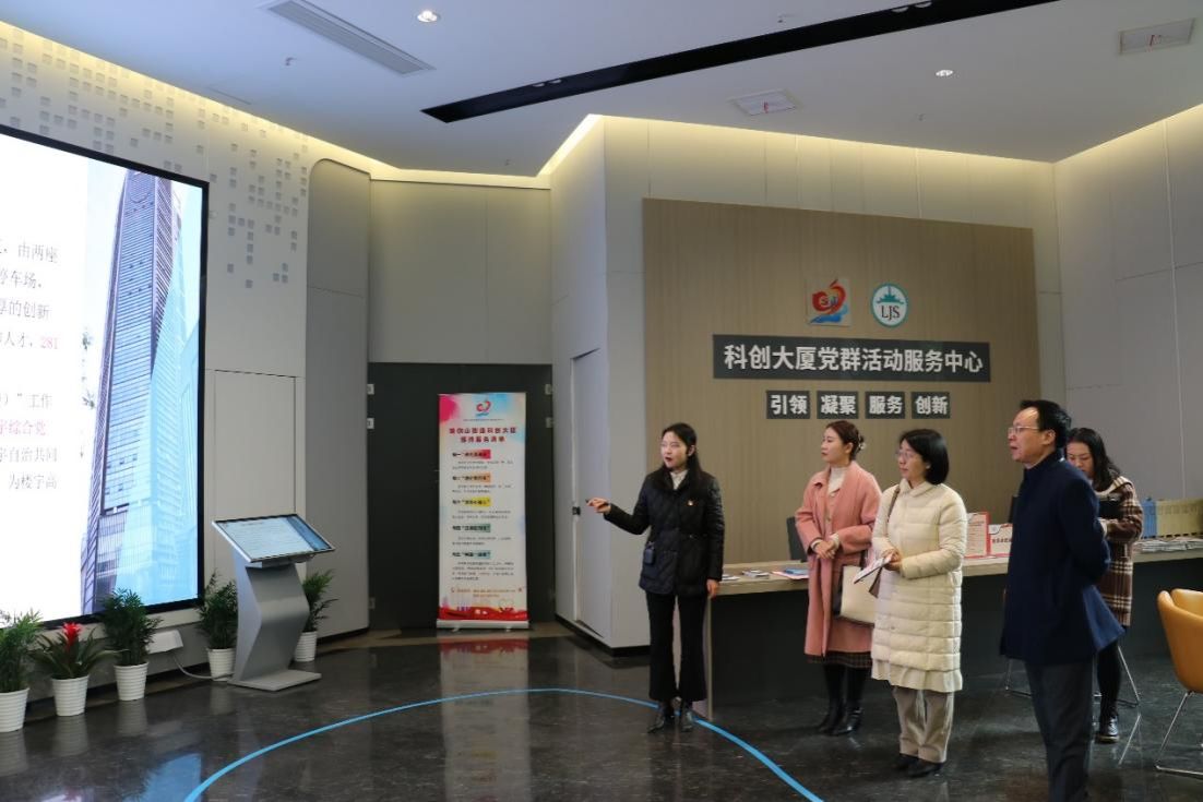 师生们一行听取工作人员介绍了科创大厦近年来通过党建引领发展,紧扣“引领、凝聚、服务、创新”的工作目标,不断打造优化楼宇治理共同体的具体情况,参观了科创大厦C座斗转科技园。
