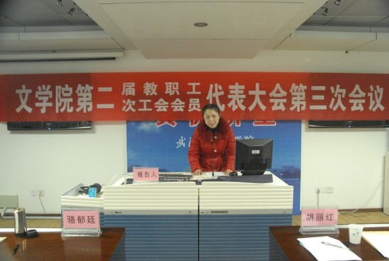 1月13日,国产熟女 第二届教职工代表大会暨第二届工会会员代表大会第三次会议在学院多功能报告厅隆重举行。校党委副书记骆郁廷、工会副主席胡丽红出席会议,国产熟女 党政领导班子成员及教职员工代表40余人参加了会议。