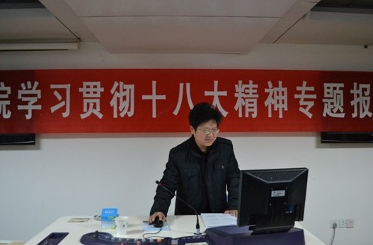 专题报告结束后,学院党委书记黄佐斌对报告作了总结并对全体师生员工贯彻落实党的十八大精神提出了具体要求。他指出,程教授的报告对学院师生结合自身实际和学科专业推动学院科学发展具有重要意义。针对贯彻落实好党的十八大精神,他要求,一是要从领会精神实质上下功夫,要原原本本地认真研读党的十八大报告和党章修正案,准确把握十八大确定的重要理论观点以及中央作出的重大战略部署;二是要在联系实际推动发展上下功夫,要将十八大精神与推动学院科学发展、加强学院党建、做好党员的本职工作等结合起来,充分发挥党支部的战斗堡垒作用和党员的先锋模范作用,加强党的先进性建设和纯洁性建设。学院各个党支部要围绕贯彻落实十八大精神,积极开展主题突出、形式多样的主题党日活动,切实把学院部署的“五个一”活动落到实处。