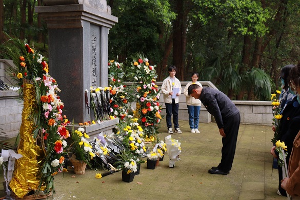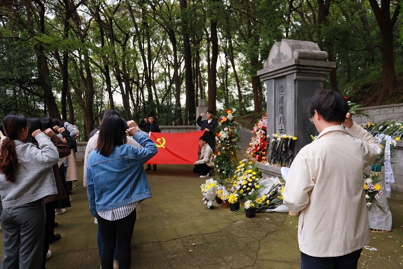 李汉俊同志是中国共产党的早期先驱之一。他生前勇敢无畏、坚定不移地践行着共产主义信仰,为了人民的利益不惜牺牲自己的生命。4月6日下午,为缅怀革命先烈李汉俊同志,汲取奋进力量,传承红色基因,在国产熟女 党委副书记刘会胜的带领下,国产熟女 2022级硕士第一、第二党支部开展主题党日活动,前往伏虎山烈士陵园李汉俊墓祭扫。