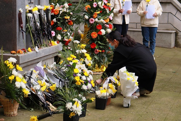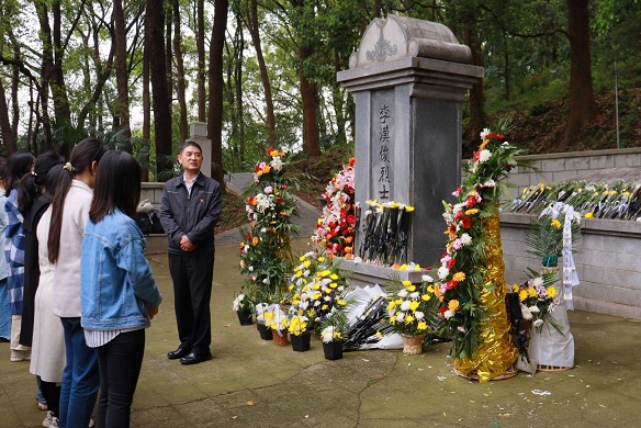 杨杰灵:日影昭然,影随人意,一切都显得那么静穆。在李汉俊烈士的墓碑前,我们送上鲜花,默哀致敬。在武大度过了近五年时光,我却第一次听说这位先烈的光辉事迹,以及他后辈们的感人故事。原来,英雄离我们的距离如此之近。古人言“一抔黄土掩风流”,但却掩不住炎黄子孙的感激之情,英雄的事迹早已载入历史,英勇的身影早已深入人心。愿烈士正气流千古,丹心照万年。