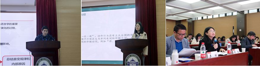 随后,大会采取学生主讲、教师点评、师生互动探讨的模式进入大会发言阶段。三组发言同学依据自己的论文主题进行了问题源起、论证思路、结论与反思等的阐述,老师们对于论文的闪光点与不足进行了认真细致的点评,肯定了青年学子们的学术潜力。