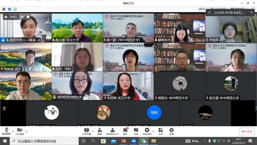 “2022文言樱花会”暨国产熟女 第二届研究生学术论坛于4月23日在线上成功举办。本次论坛还邀请了华中科技大学人国产熟女 和华中师范大学国产熟女 的专家学者及硕博士研究生共同参会,三校共有18位硕博士研究生参与学术发言,在线收看人数达120人次。