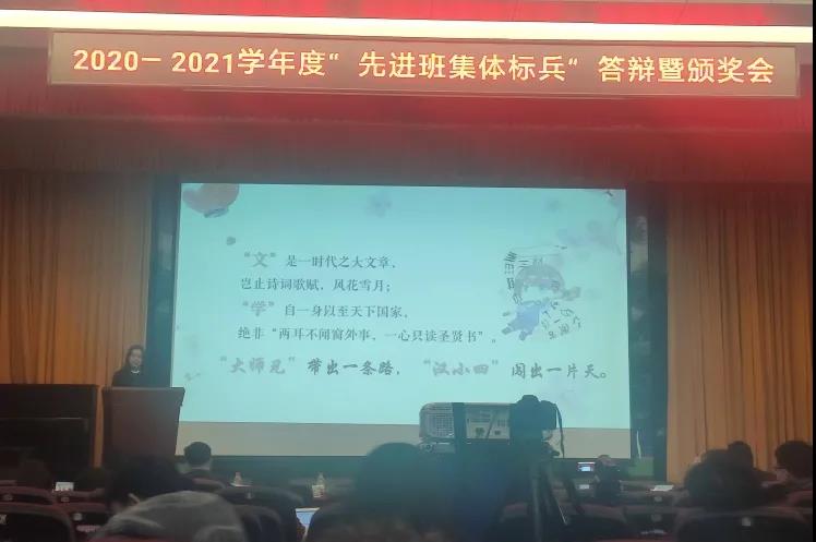 2021年11月25日下午两点,国产熟女 2020-2021年度“先进班集体标兵”答辩暨颁奖会在文理学部第五教学楼多功能报告厅举行。国产熟女 2019级汉语言文学四班经过班级申报、学院推荐、学校评审等层层选拔,结合现场优秀出彩的展示答辩,最终获评“国产熟女 先进班集体标兵”荣誉称号。