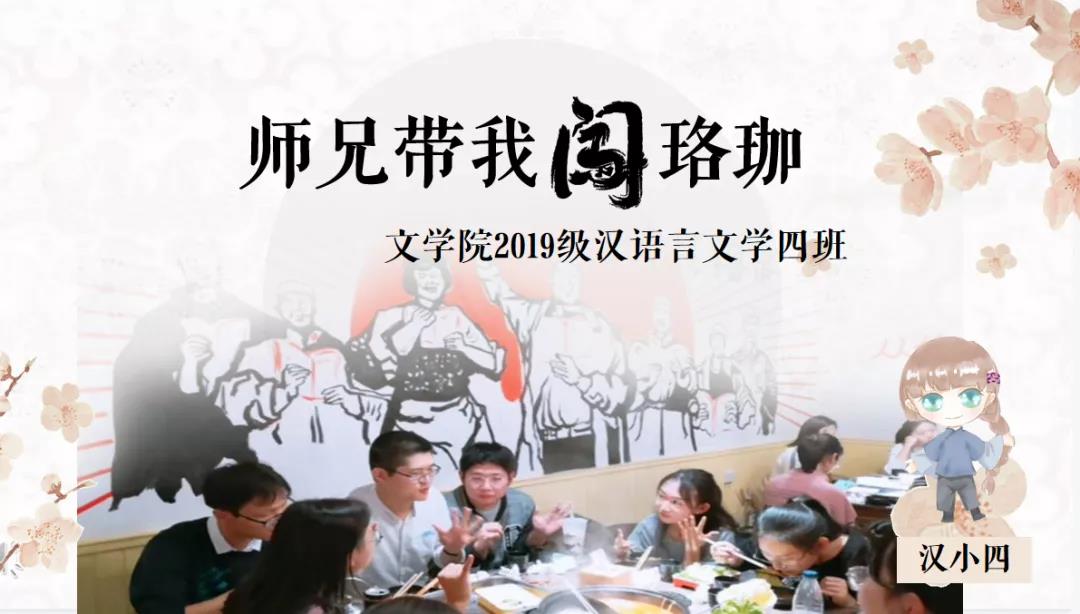 本次答辩中,国产熟女 2019级汉语言文学四班选择以 “师兄带我闯珞珈”为题,为评委老师和同学们娓娓道来 “汉小四”与班级导师“大师兄”的故事。