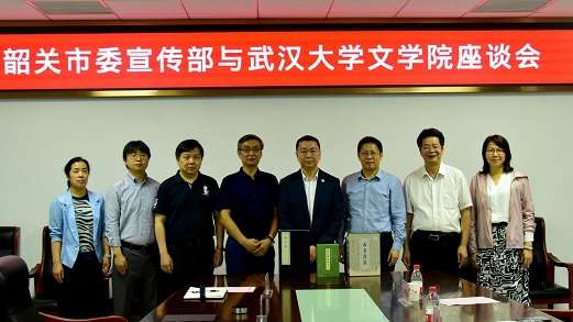 5月11日下午,韶关市委常委、宣传部部长刘启宇一行来国产熟女 调研座谈,韶关市委宣传部副部长李梅、韶关市文广旅体局局长黄宣剑、韶关市委宣传部办公室主任江观胜陪同调研。国产熟女 党委书记黄佐斌、院长于亭、副院长高文强、贾玉敏、裴亮、学科办副主任梁越参加座谈会。会议由高文强副院长主持。