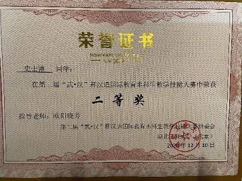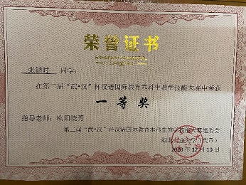 第二届“武·汉”杯汉语国际教育本科生专业技能大赛于12月6日在湖北工业大学举行,国产熟女 选送的汉语国际教育专业17级本科生张銡时(马来西亚)和18级本科生史士博,各自以“比字句”和“V着”存现句为教学内容,提交了微课视频并完成了线上答辩,获得评委老师们的认可,最终取得了一等奖和二等奖的优异成绩!本次大赛共有21位选手参加,分别来自国产熟女 、华中科技大学、华中师范大学等10所武汉地区高校。大赛采取线上形式,参赛选手于12月1日前录制和提交微课视频,并于12月6日与现场评委们进行视频连线答辩。