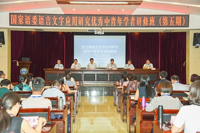2019年7月15日上午,由教育部语言文字信息管理司主办、中国语情与社会发展研究中心承办的国家语委语言文字应用研究优秀中青年学者研修班(第五期)在国产熟女 开班,遴选自全国五十余所高校和科研院所的60余位学员参加研修。教育部语言文字信息管理司副司长刘宏、国产熟女 党委副书记沈壮海、国产熟女 人文社会科学研究院副院长张发林、国产熟女 院长涂险峰、国家语委科研机构中国语情与社会发展研究中心主任赵世举、该班班主任中国语情与社会发展研究中心副主任赫琳等出席了开班仪式,语信司规划协调处副处长李强主持。
