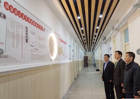 (专家组查看机房外宣传栏)