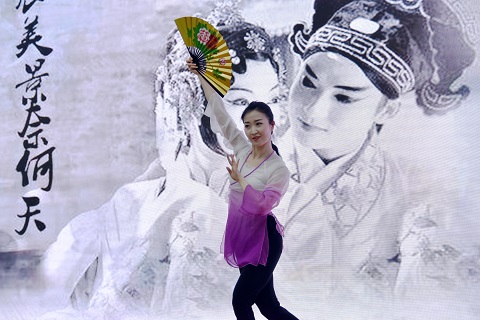 音乐声声寒气跑,大屋忘龄闹。赏怒放青春,金振歌喉,眼福今终饱!