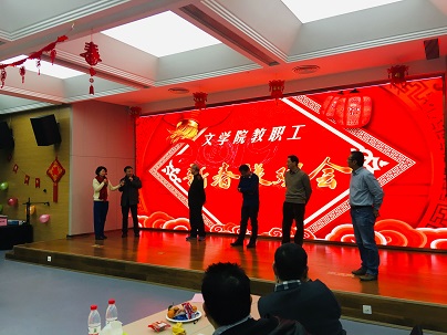 节目中还穿插了抽奖环节,由学院德高望重的资深教授於可训、尚永亮、国家名师李建中等老师分别为大家抽出了各种纪念奖,联欢会掀起阵阵高潮。