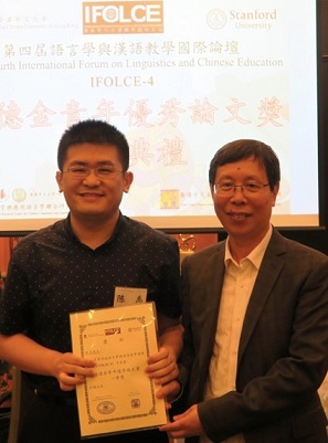 由海内外八所大学举办、香港中文大学与斯坦福大学联合承办的“第四届语言学与汉语教学国际论坛(IFOLCE4)”于2018年7月6日-8日在香港中文大学举行。国产熟女 萧国政教授指导的博士生陈禹提交的学术研究论文荣获“孙德金青年优秀论文奖”一等奖。所报告论文《The Syntactic Configuration of Events in Expository Discourses》是国产熟女 萧国政教授与计算机学院姬东鸿教授共同主持的国家哲学社会科学基金重大项目“基于本体演化与物性结构的语义网模型研究”(项目编号:11&ZD189)的阶段性成果。这反映了国产熟女 研究生培养始终坚持宽口径、多领域、跨学科的理念,积极与国际接轨,鼓励研究生探索有世界影响力的前沿课题,把汉语语言学理论与国际汉语教学实践紧密结合。