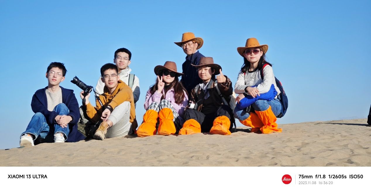 踏上鸣沙山之旅不得不提骑骆驼,同学们五五成行,沿着蜿蜒曲折的山路前行,也欣赏着沿途的美景。骆驼们沉稳而有力的步伐,让同学们感受到了沙漠的神秘与魅力。骑在骆驼背上,闭上双眼,感受这跌宕起伏,同学们仿佛穿越回了古代丝绸之路,体验着历史的厚重与沧桑。眺望远方,连绵起伏的沙丘波澜壮阔。阳光洒在沙丘上,同学们沉醉其中,种种感受都成为了同学们心中永恒的记忆。