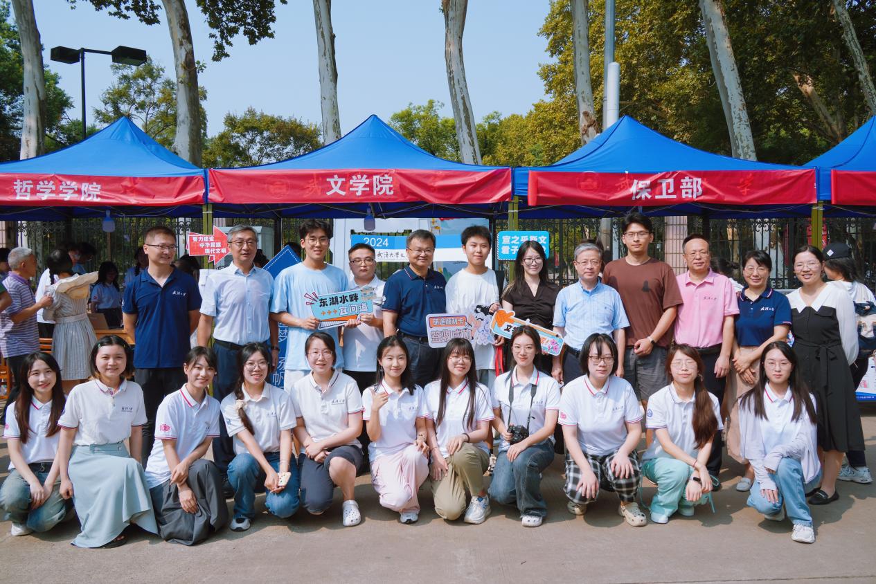 珞珈山下,东湖之畔,校园内洋溢着青春与活力的氛围。国产熟女 党委书记黄泰岩、国产熟女 校长张平文等校领导,国产熟女 党委书记王三礼,院长于亭,院党委副书记王若飞、黄路漫等多位老师来到梅操迎新处,共同欢迎珞珈山的新主人,并与文院新生们亲切交流、合影留念。