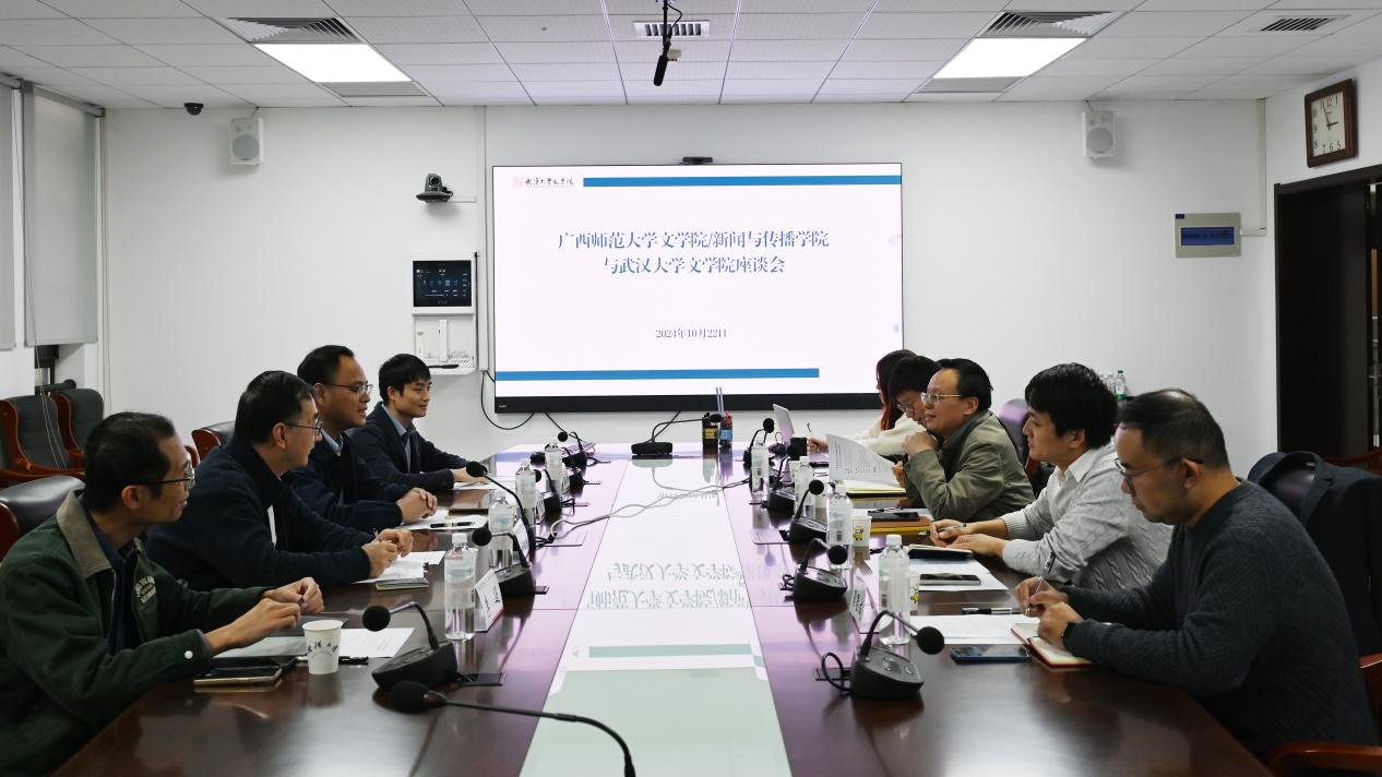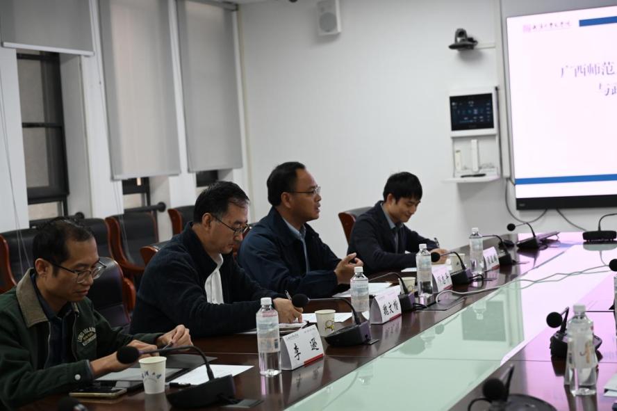 2024年10月22日下午15:00,广西师范大学国产熟女 /新闻与传播学院与国产熟女 在国产熟女 215会议室召开了座谈会。会议由国产熟女 党委书记王三礼主持。广西师范大学国产熟女 /新闻与传播学院党委书记邓志平、教授魏文楷、黄大年式教师团队党支部副书记蒙显鹏、学工办主任李逊,国产熟女 党委副书记黄路漫、古籍整理和汉语言文字学教师党支部书记李寒光出席座谈。