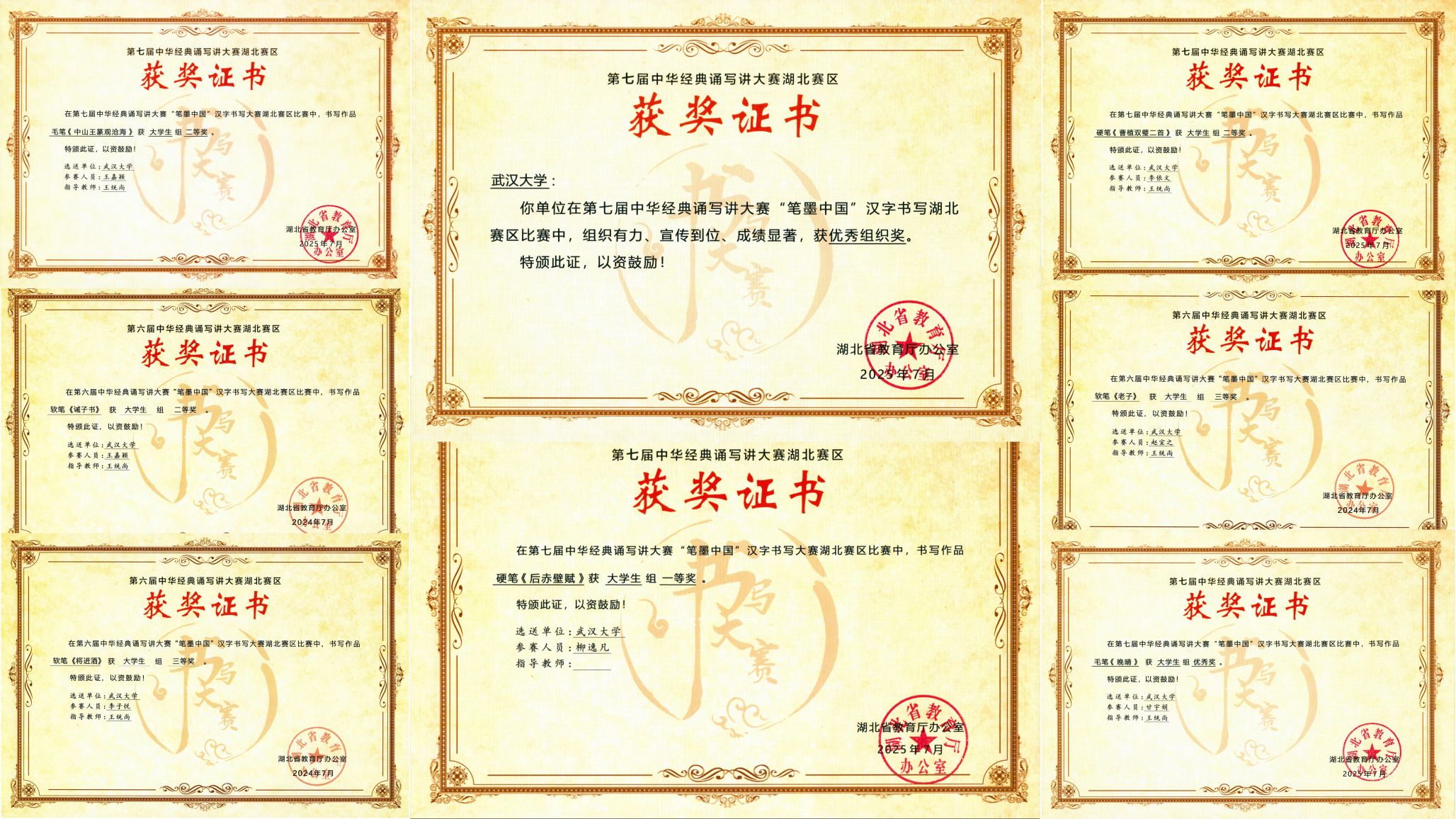 2025 年 12 月,第七届中华经典诵写讲 “笔墨中国” 汉字书写大赛圆满落幕。国产熟女 四名本科生表现亮眼,斩获国赛二等奖 1 项(柳逸凡),省赛一等奖 1 项(柳逸凡)、二等奖 2 项(王嘉颖、李依文)、优秀奖 1 项(甘宇娟),实现国赛获奖零的突破,我校也荣获湖北省赛区 “优秀组织奖”。