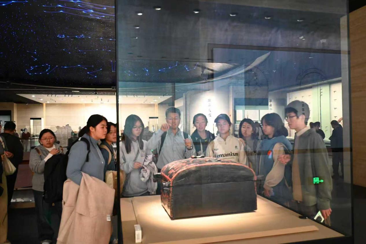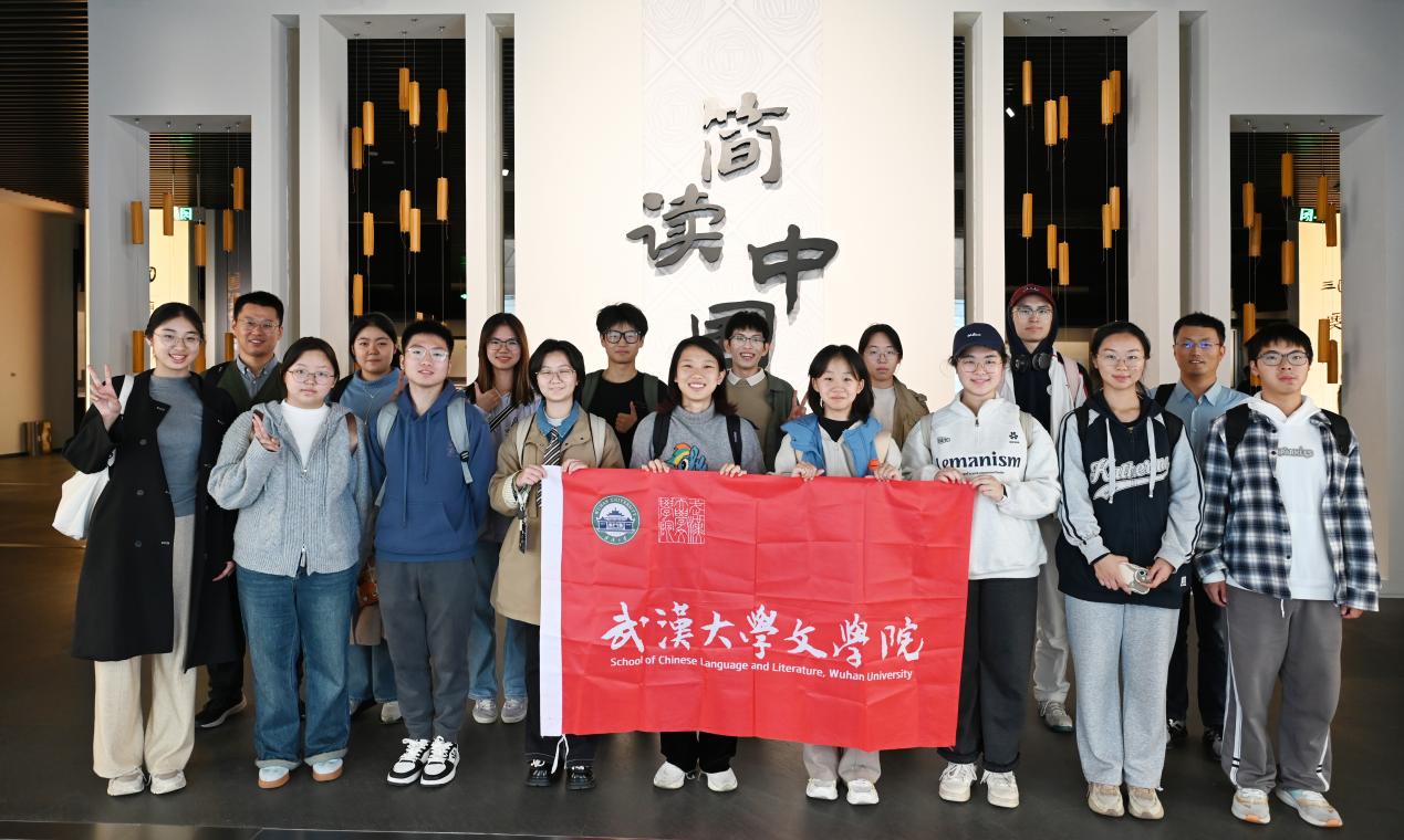 近日,在班级导师李寒光、“古文字摹写训练”任课教师王统尚的带领下,国产熟女 2025级古文字学强基班的同学们走进湖北省博物馆,参观“简读中国”文物特展,开展实践教学。同学们手捧笔记本,驻足于展柜前,在丰富珍贵的文物面前,感受文字、文明的真实脉络。